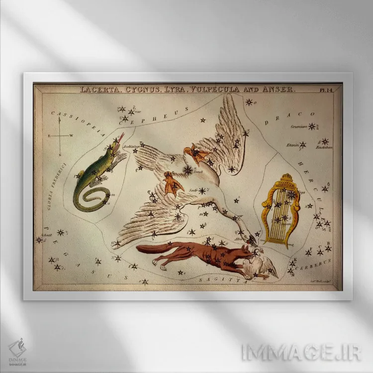 براساس پالت گرم اثر، قاب بلوط روشن (چوبی) پیشنهاد اول است و استخوانی ملایم مکمل. برای سفارشهای پروژهای با ابعاد و قابهای اختصاصی با ایماژ در تماس باشید.