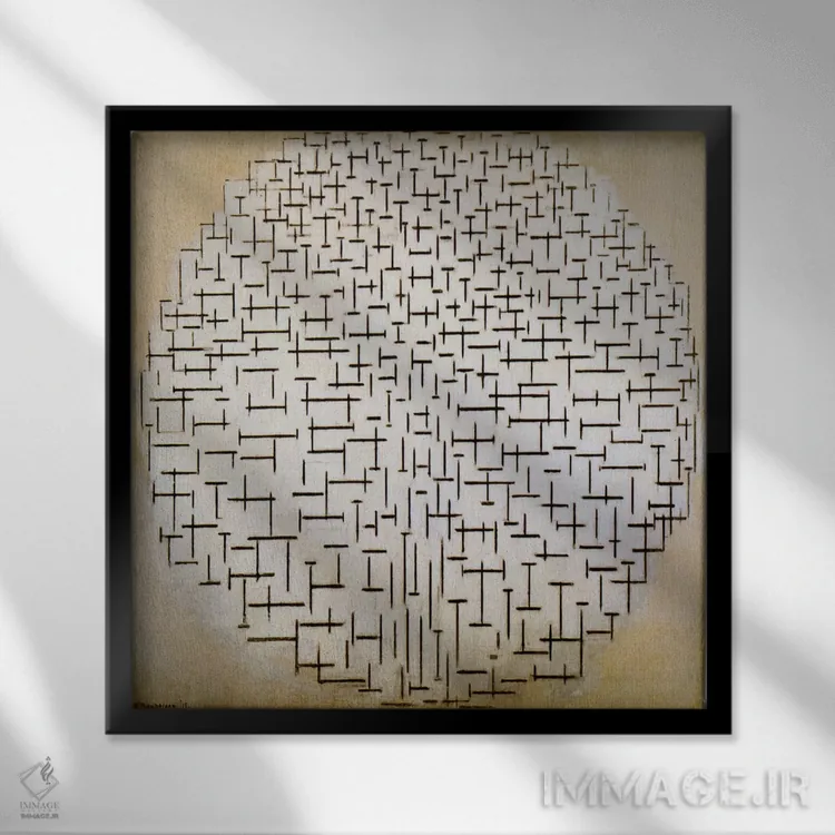تابلو اسکله و اقیانوس اثر پیت موندریان - نمای قاب‌دار سفید