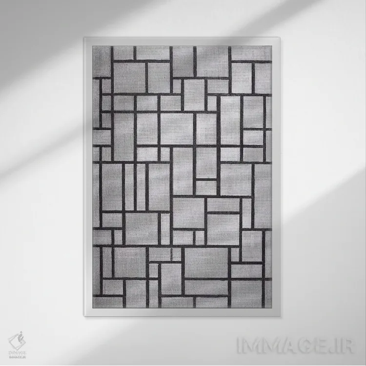 در «ترکیب در خاکستری، ۱۹۱۹» اثرِ «پیت موندریان»، رنگ و فرم نقش اصلی را دارند؛ انتخابی خوب برای فضاهای امروزی و دیوارهای مینیمال.