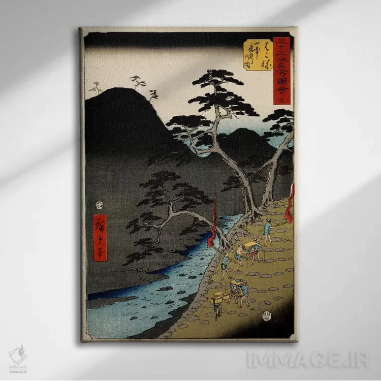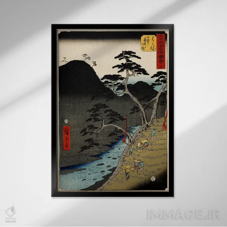 این اثرِ «اوتاگاوا هیروشگه (نقاش و چاپگر ژاپنی اوکییو—ئه)» در لحن کلاسیک، وقار بصری دارد؛ موضوعِ این اثر هم برای دیوارِ شاخص و نورپردازی گرم بسیار مناسب است.