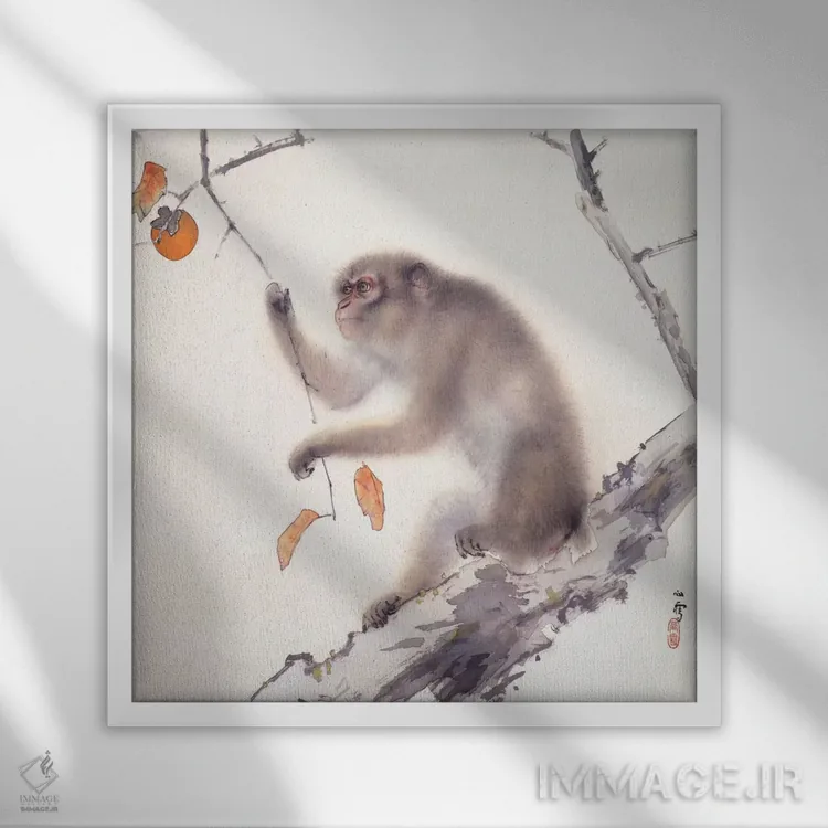 تابلو میمون اثر هاشیموتو کانستسو - نمای قاب‌دار سفید
