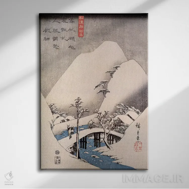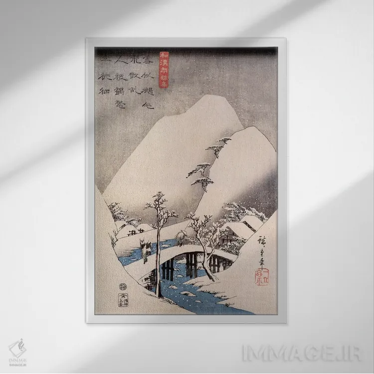 «پل در منظرهای برفی» اثرِ «اوتاگاوا هیروشگه (نقاش و چاپگر ژاپنی اوکییو—ئه)» با حالوهوای دکور آسیایی و موضوعِ این اثر، برای فضاهای آرام، مینیمال و متعادل انتخاب مناسبی است.