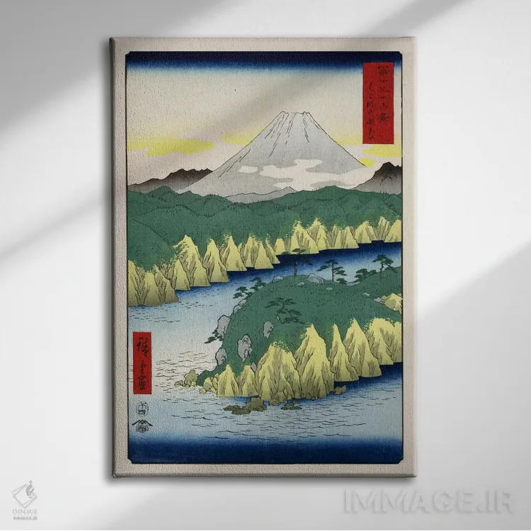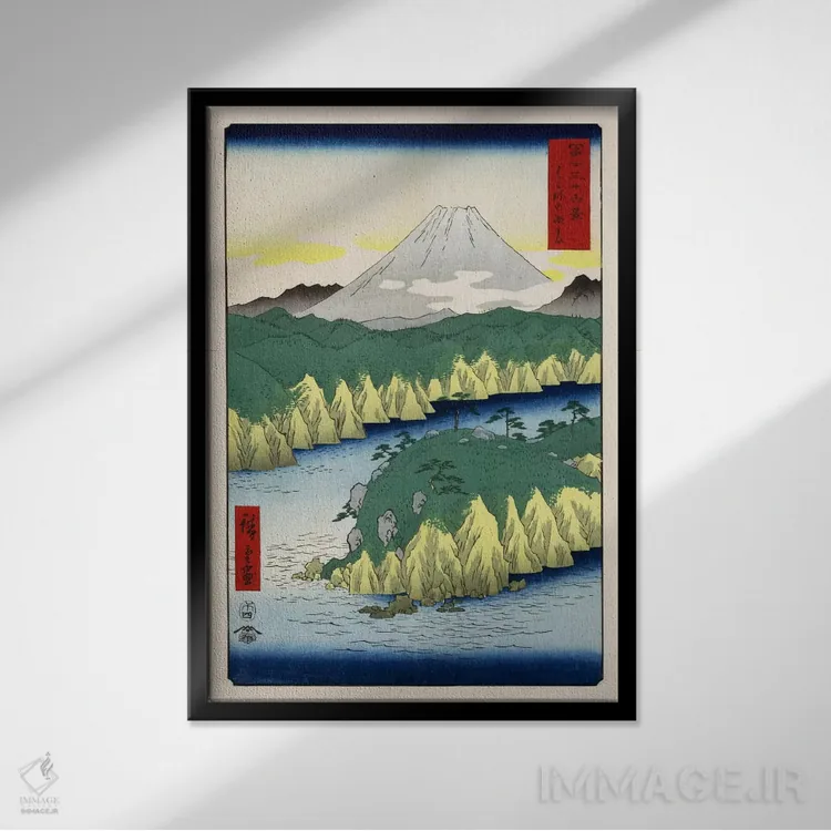 اگر به قابهای رسمی و گالریپسند علاقه داری، «دریاچه در هاکونه» اثرِ «اوتاگاوا هیروشگه (نقاش و چاپگر ژاپنی اوکییو—ئه)» با موضوعِ این اثر در فضای فاخر کلاسیک گزینهی مطمئنی است.