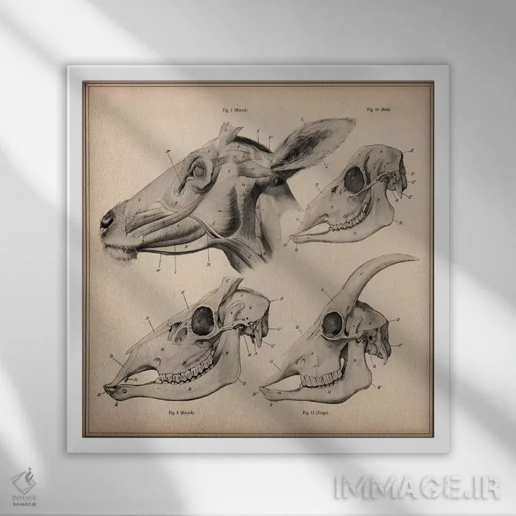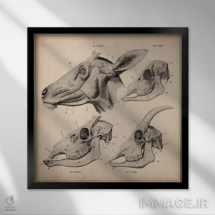 «آناتومی جمجمه سر بز» اثرِ «هنرمند ناشناس» میتواند مثل یک امضای بامزه اما متین عمل کند؛ برای اتاق کودک (بدون لحن کودکانه) پیشنهاد میشود. هر بار نگاهش میکنید، یک جزئیات تازه به چشم میآید.