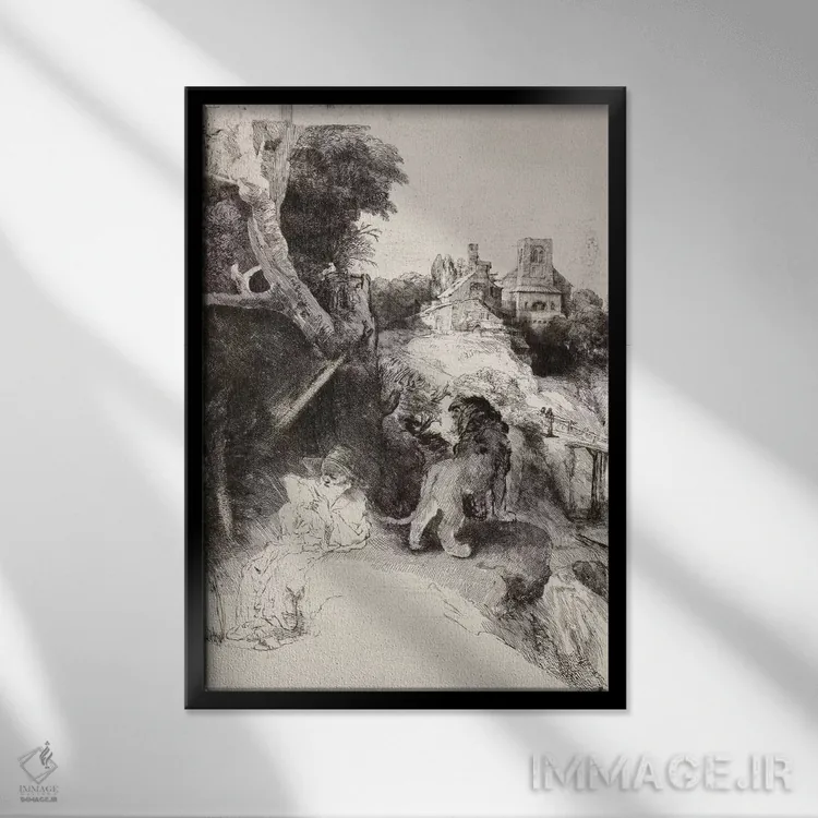 برای دیواری که میخواهید سلیقهتان را آرام و دقیق نشان بدهد، «سن ژروم در حال مطالعه در مناظر ایتالیا» اثرِ «رمبرانت فان رَین (نقاش بزرگ هلندی)» جلوهٔ اتاق را یک پله حرفهایتر میکند؛ برای فضاهایی با نور طبیعی پیشنهاد میشود. برای پروژههای طراحی داخلی هم گزینهای قابل اتکاست.
