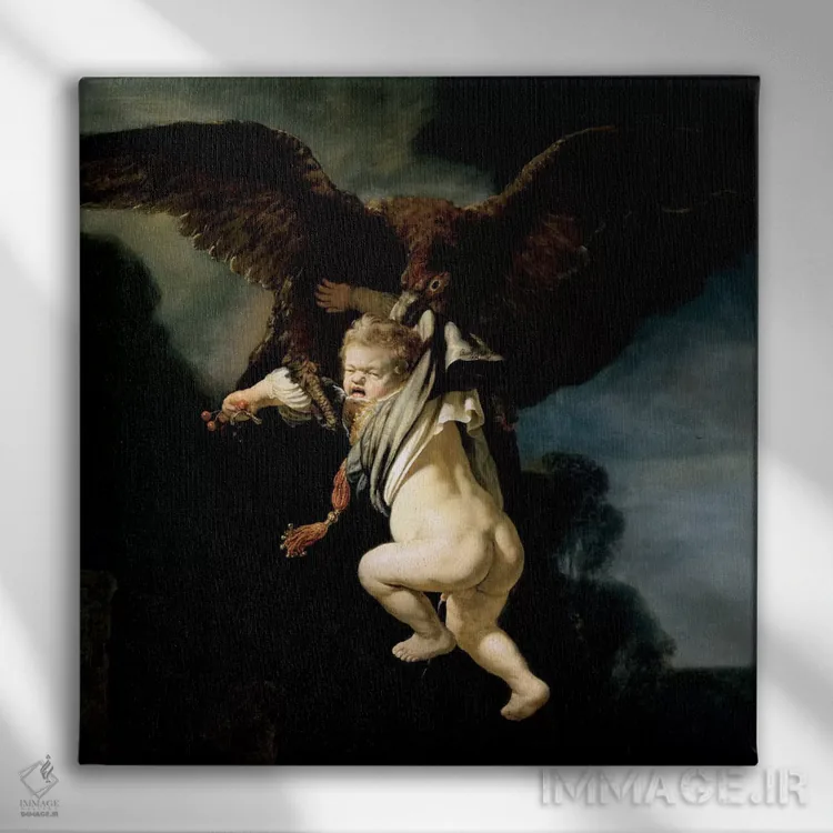اگر میخواهید دیوار از «پسزمینه» بیرون بیاید، «ربوده شدن گانیمد» اثرِ «رمبرانت فان رَین (نقاش بزرگ هلندی)» در دکور، مثل یک امضای ظریف عمل میکند؛ برای کنار کتابخانه یا میز کار پیشنهاد میشود. با مبلمان خنثی، تضاد دلنشینی میسازد.