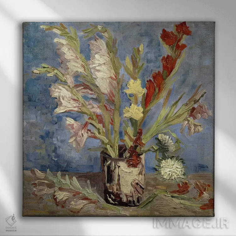 تابلو گلدان با گلهای گلادیول و گل ستارهای چینی، ۱۸۸۶ اثر ونسان ون گوگ (نقاش مشهور هلندی پستامپرسیونیسم)
