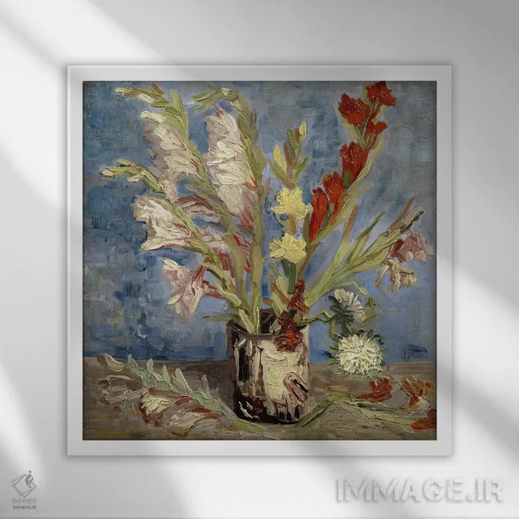 اگر به قابهای رسمی و گالریپسند علاقه داری، «گلدان با گلهای گلادیول و گل ستارهای چینی، ۱۸۸۶» اثرِ «ونسان ون گوگ (نقاش مشهور هلندی پستامپرسیونیسم)» با موضوعِ این اثر در فضای فاخر کلاسیک گزینهی مطمئنی است.