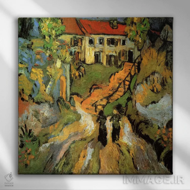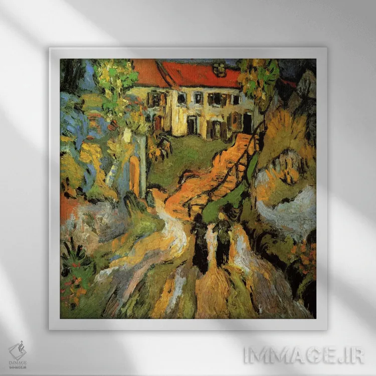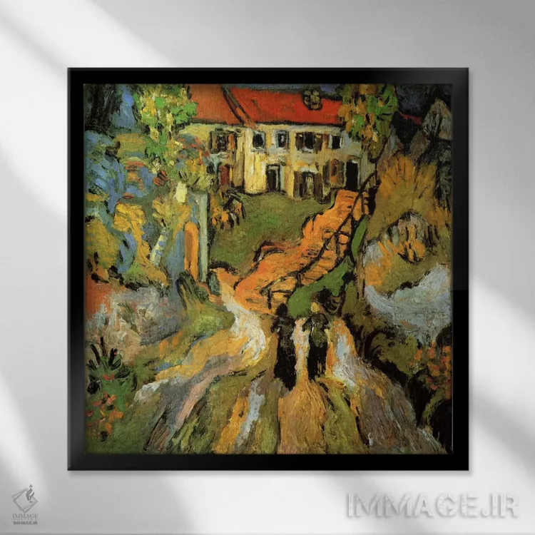 «خیابان روستا و پلهها در اوور با دو نفر» اثرِ «ونسان ون گوگ (نقاش مشهور هلندی پستامپرسیونیسم)» با حالوهوای هنر فاخر کلاسیک و موضوعِ این اثر، برای پذیراییهای رسمی و دکورهای کلاسیک انتخابی شایسته است.