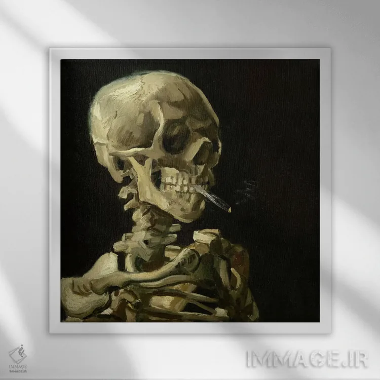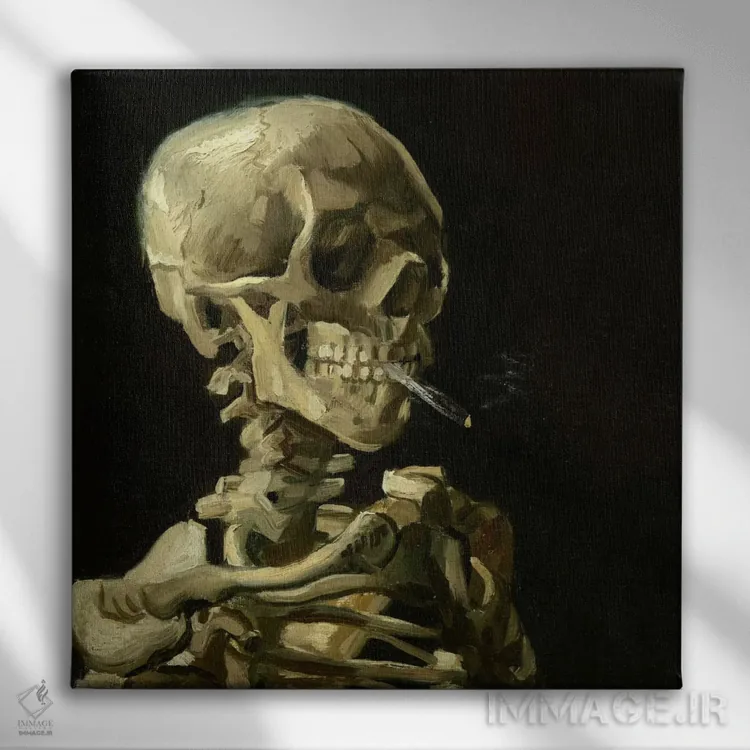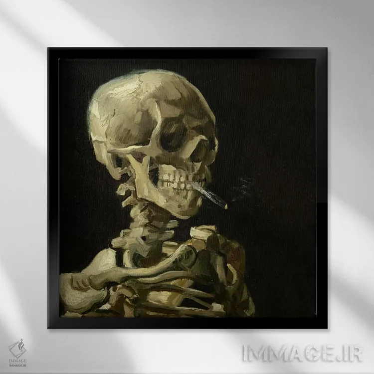 «جمجمه با سیگار روشن» اثرِ «ونسان ون گوگ (نقاش مشهور هلندی پستامپرسیونیسم)» با حالوهوای هنر فاخر کلاسیک و موضوعِ این اثر، برای پذیراییهای رسمی و دکورهای کلاسیک انتخابی شایسته است.