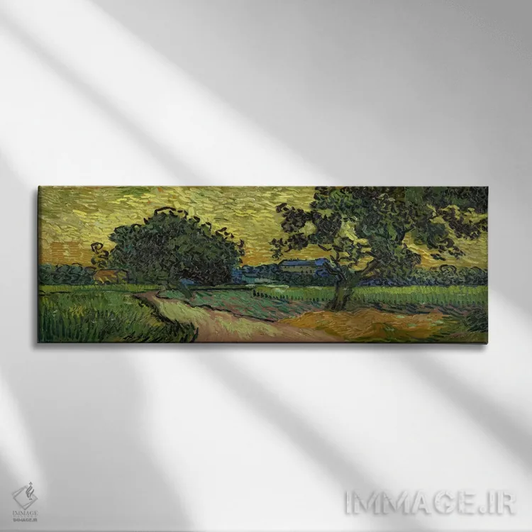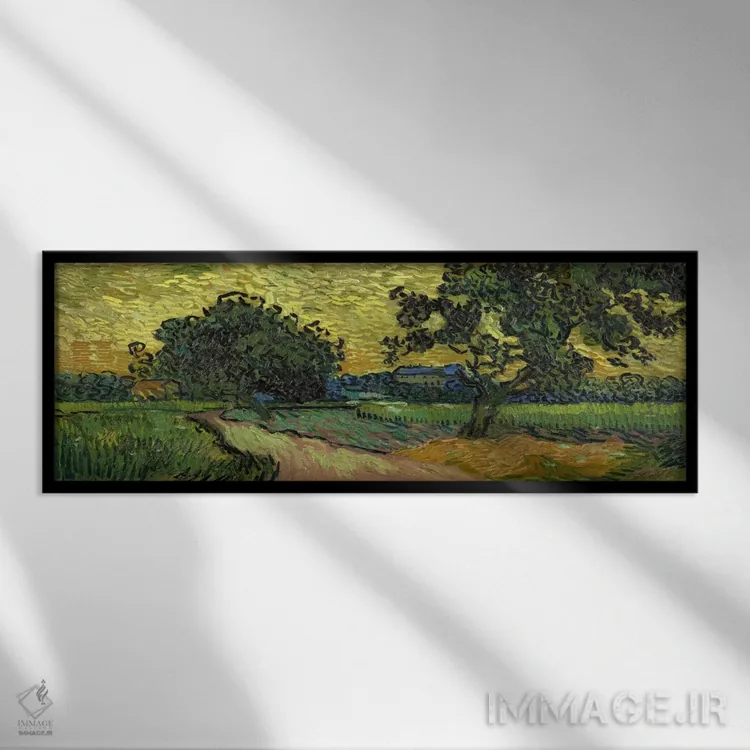 «منظره هنگام غروب» اثرِ «ونسان ون گوگ (نقاش مشهور هلندی پستامپرسیونیسم)» با حالوهوای هنر فاخر کلاسیک و موضوعِ این اثر، برای پذیراییهای رسمی و دکورهای کلاسیک انتخابی شایسته است.