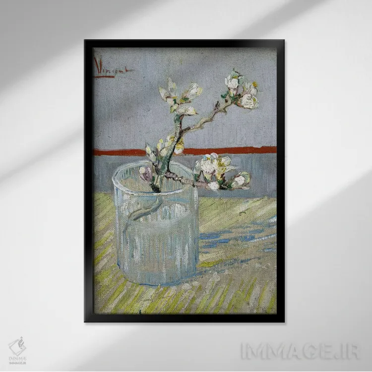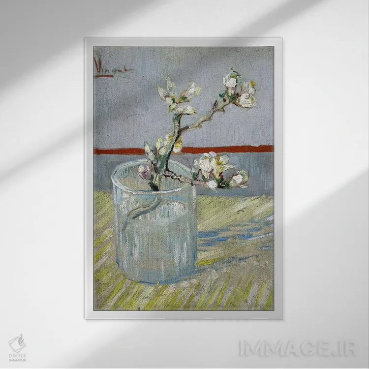 تابلو شاخه شکوفه بادام در لیوان اثر ونسان ون گوگ (نقاش مشهور هلندی پستامپرسیونیسم)