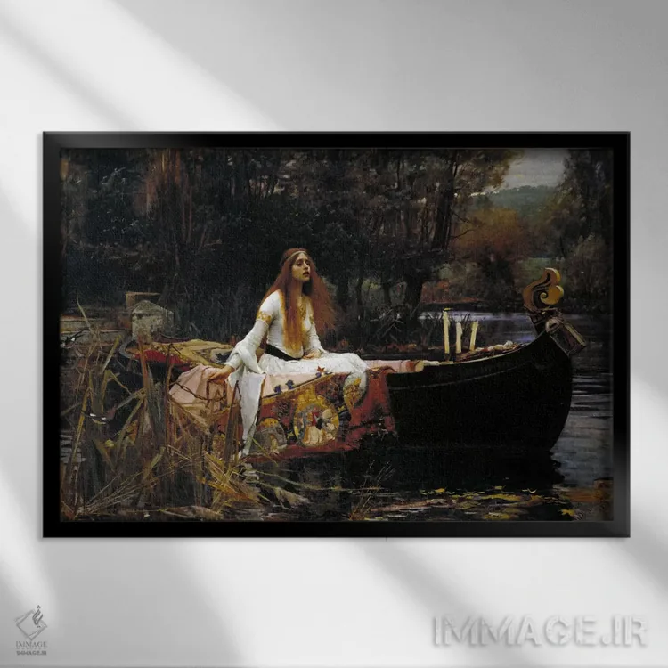 تابلو بانوی شالوت اثر جان ویلیام واترهاوس (نقاش انگلیسی سبک پره‌-رافائلیت) - نمای قاب‌دار مشکی