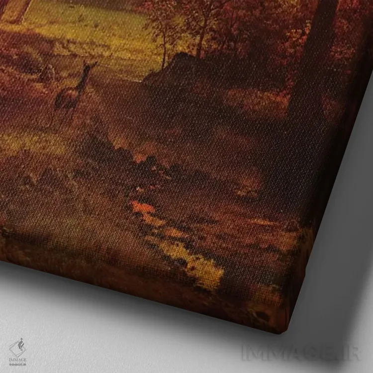 تابلو درخت داگ‌وود (نوعی درخت گلدار) اثر آلبرت بیرشتات (نقاش منظره آمریکایی) - نمای نزدیک بافت بوم