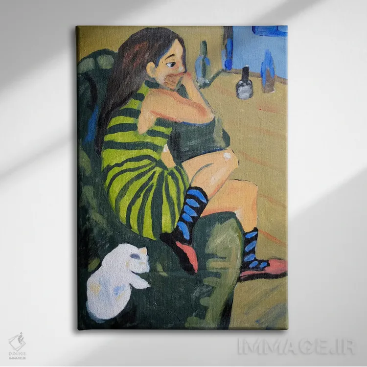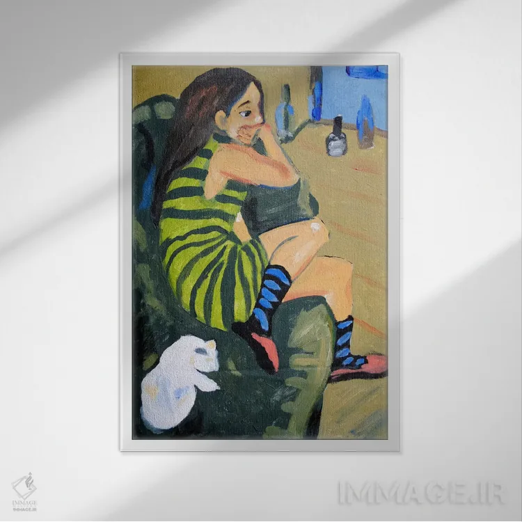 برای دیوارهای ساده، «هنرمند زن» اثرِ «ارنست لودویگ کیرشنر (نقاش اکسپرسیونیست آلمانی)» در کنار رنگهای خنثی، تضاد دلچسبی میسازد؛ برای راهروها و ورودیهای گرم انتخابی خوشسلیقه است. به دیوار، قصه میدهد—اما قصهای آرام و شیک.