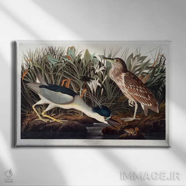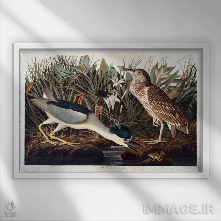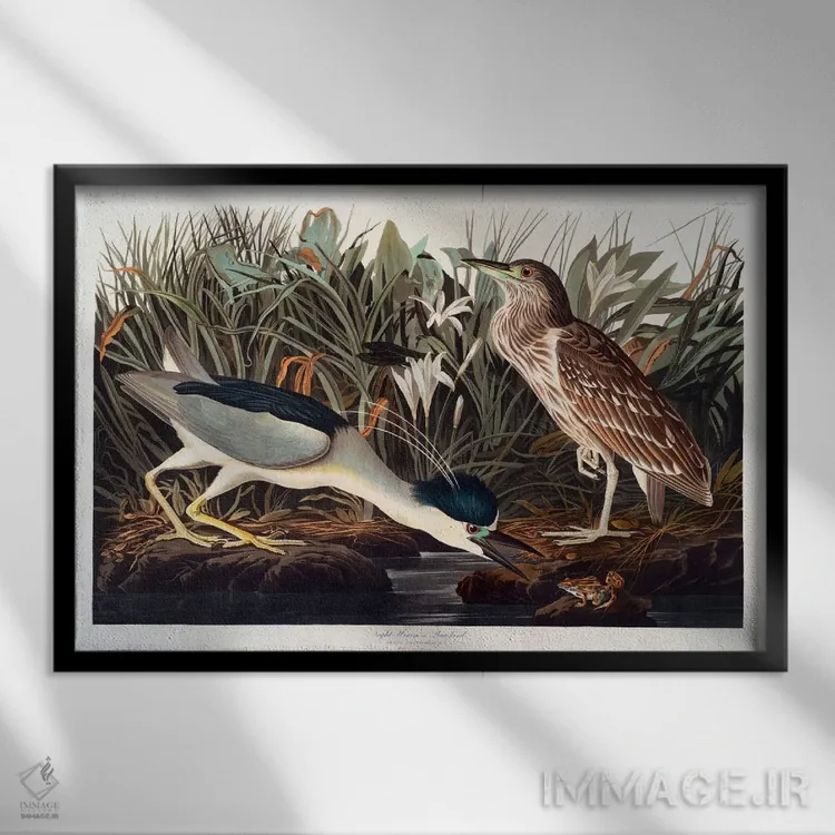 این اثر با عنوان «حواصیل شبزی تاجسیاه یا پرندهٔ کوآ» اثرِ «جان جیمز آدوبون (نقاش و پرندهشناس)» گرما و شخصیت به فضا اضافه میکند؛ برای هدیهدادن به دوستداران حیوانات انتخابی خوشسلیقه است. به دیوار، قصه میدهد—اما قصهای آرام و شیک.