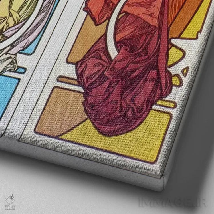 تابلو اسناد تزئینی (۱۹۰۲) اثر آلفونس موخا (هنرمند آرت نووی چک) - نمای نزدیک بافت بوم
