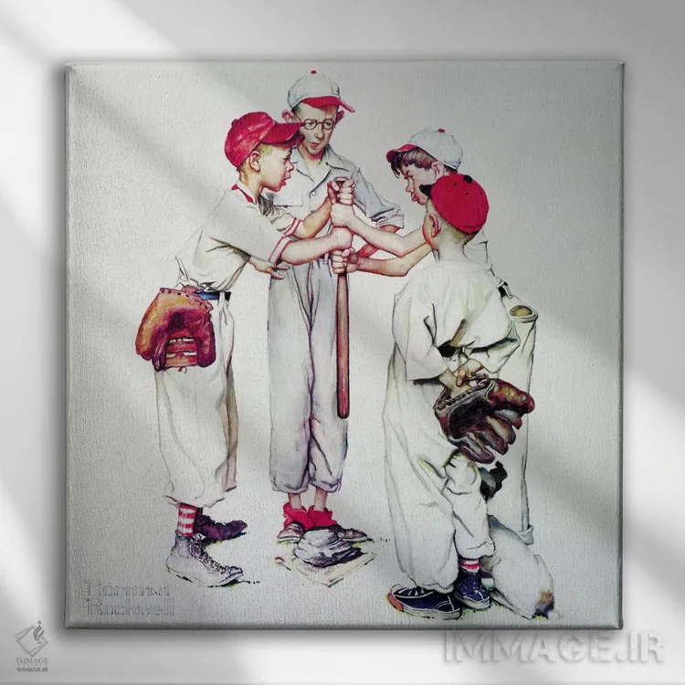 تابلو انتخاب تیم (چهار پسر ورزشکار: بیسبال) اثر نورمن راکول - نمای نزدیک بافت بوم