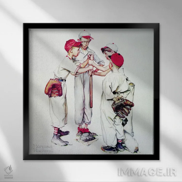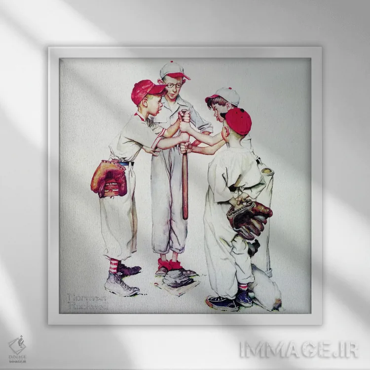 تابلو انتخاب تیم (چهار پسر ورزشکار: بیسبال) اثر نورمن راکول - نمای قاب‌دار سفید