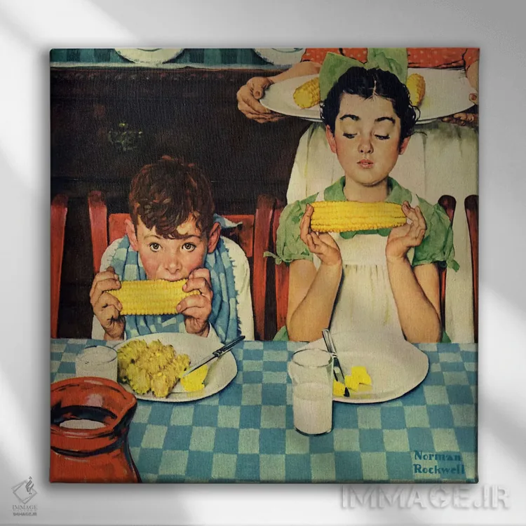 تابلو کدام یکی بیشتر خوش میگذراند (بچهها در حال خوردن ذرت) اثر نورمن راکول