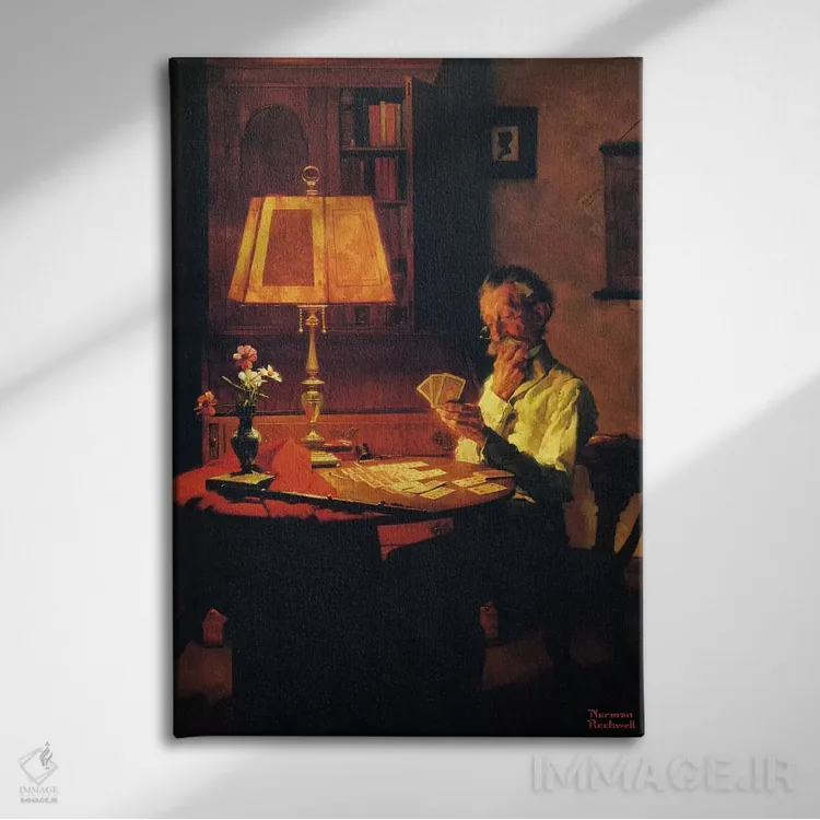 در نگاه اول، «مرد در حال بازی ورق با نور چراغ» اثرِ «نورمن راکول» چیدمان را از حالت پراکنده خارج میکند؛ برای کافهها و فضاهای عمومی کوچک پیشنهاد میشود. یک انتخاب خوشسلیقه است که با گذر زمان هم تازه میماند.