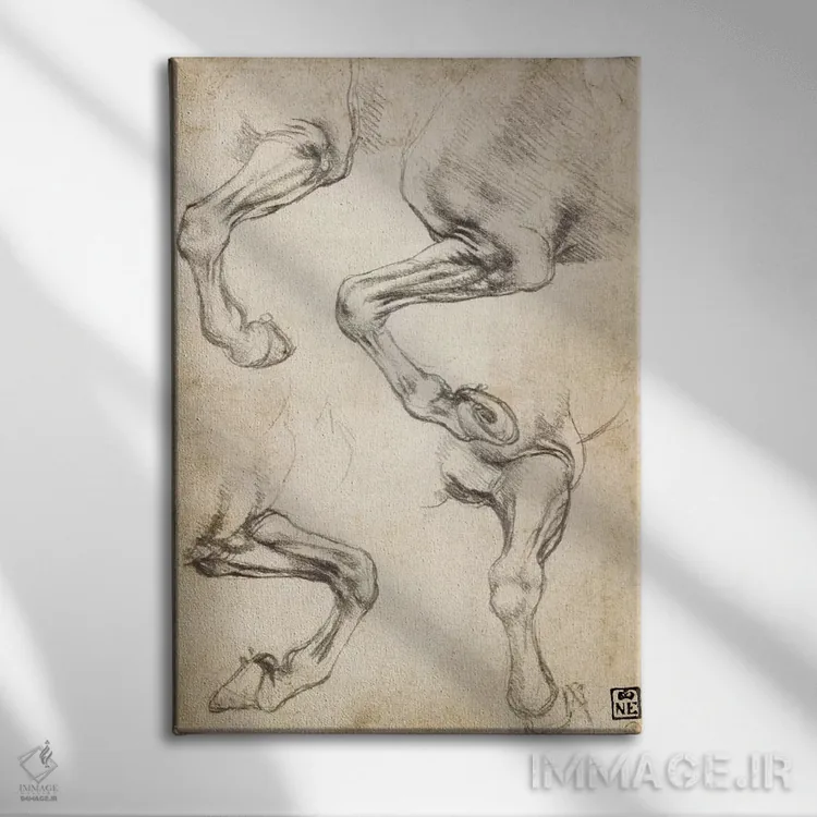 «مطالعات پای اسب» اثرِ «لئوناردو داوینچی (نقاش و مخترع ایتالیایی)» از آن انتخابهاییست که اتاق را جمعوجورتر و مرتبتر نشان میدهد؛ برای دیوارهای گالریوار و ترکیب چند اثر انتخابی عالی است. جزئیاتش نزدیکِ کار هم ارزش نگاه دارد.