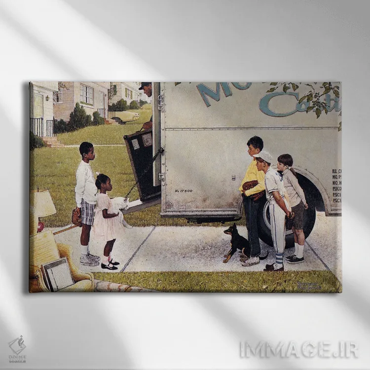 تابلو اسبابکشی (بچههای جدید در محله) اثر نورمن راکول