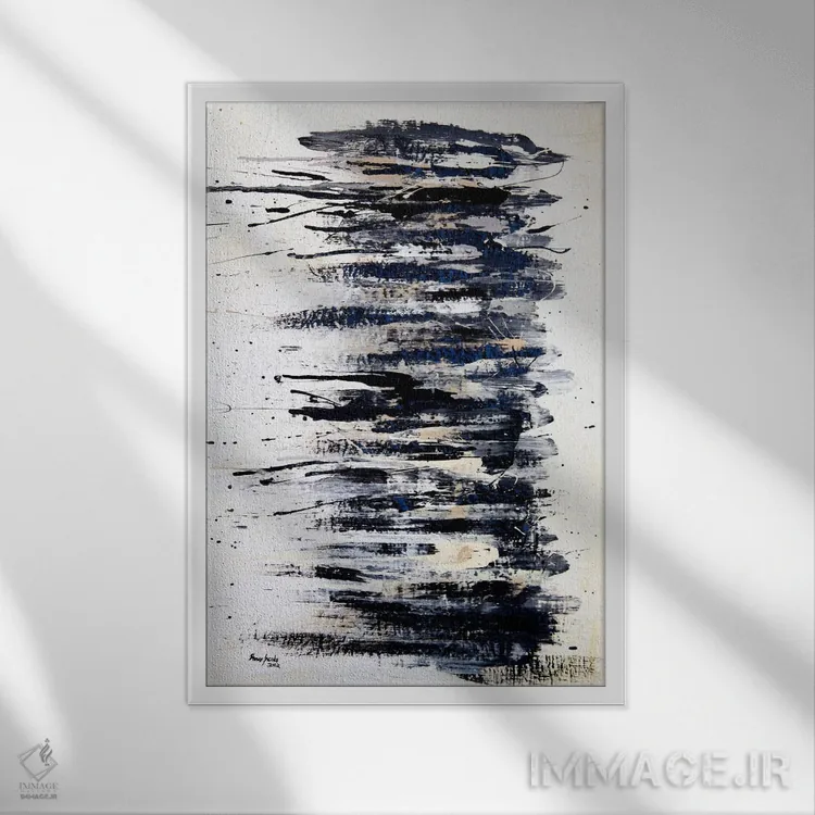 براساس پالت سرد اثر، قاب سفید مات (فریم باریک) پیشنهاد اول است و نقرهای برسخورده (متالیک) مکمل. برای سفارشهای پروژهای با ابعاد و قابهای اختصاصی با ایماژ در تماس باشید.