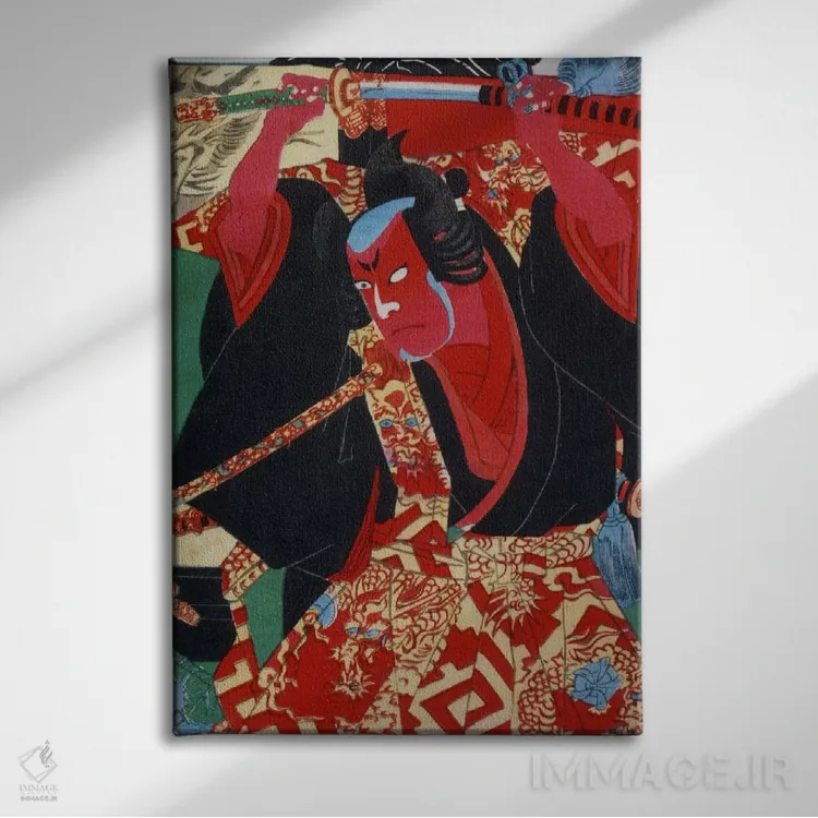 تابلو سامورایی به رنگ قرمز نقاشی شده اثر هنرمند ناشناس