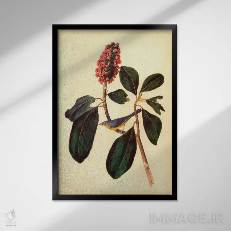 تابلو پرندهٔ خوش‌آواز (واربلر) اثر جان جیمز آدوبون (نقاش و پرنده‌شناس) - نمای قاب‌دار مشکی