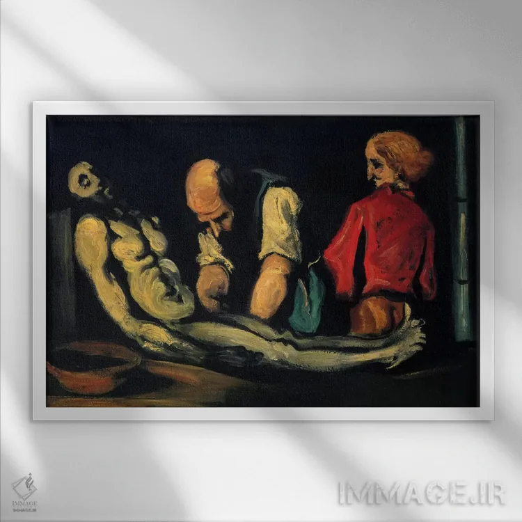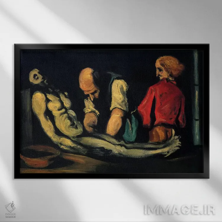 «آمادهسازی برای تشییع جنازه (کالبدشکافی)» اثرِ «پل سزان» از آن انتخابهاییست که اتاق را جمعوجورتر و مرتبتر نشان میدهد؛ برای دیوارهای گالریوار و ترکیب چند اثر انتخابی عالی است. جزئیاتش نزدیکِ کار هم ارزش نگاه دارد.