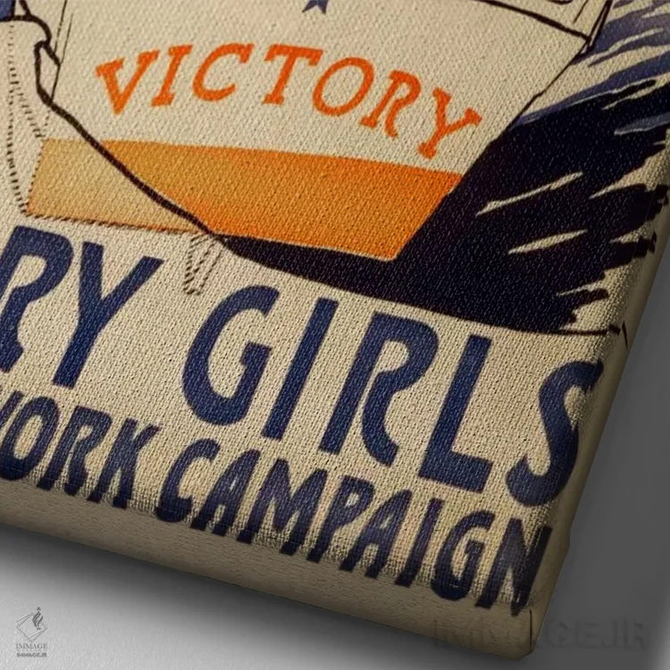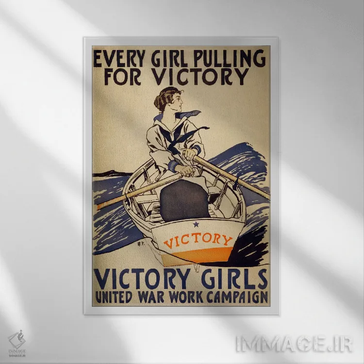 تابلو دکوراتیوِ «هر دختری برای پیروزی تلاش میکند (پوستر جنگ جهانی اول)»؛ مناسب برای فضاهایی با چوب تیره، چراغهای گرم و اکسسوریهای کلاسیک اثرِ «هنرمند ناشناس».