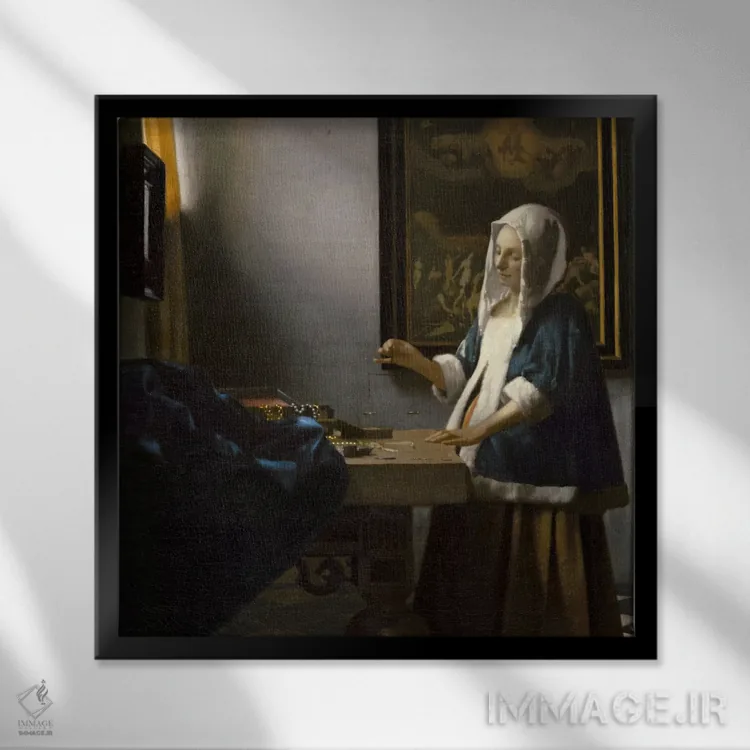 تابلو زن با ترازو اثر یوهانس ورمیر (نقاش هلندی) - نمای پرسپکتیو محصول