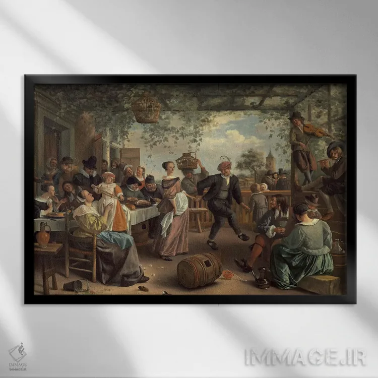 تابلو زوج رقصنده اثر یان استین (نقاش هلندی) - نمای قاب‌دار مشکی