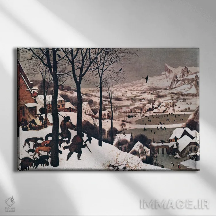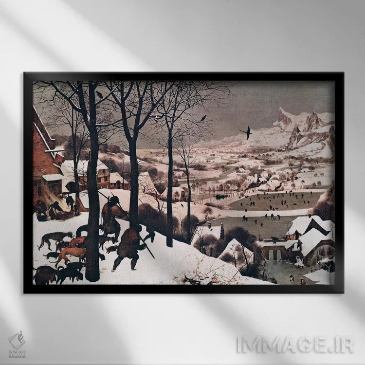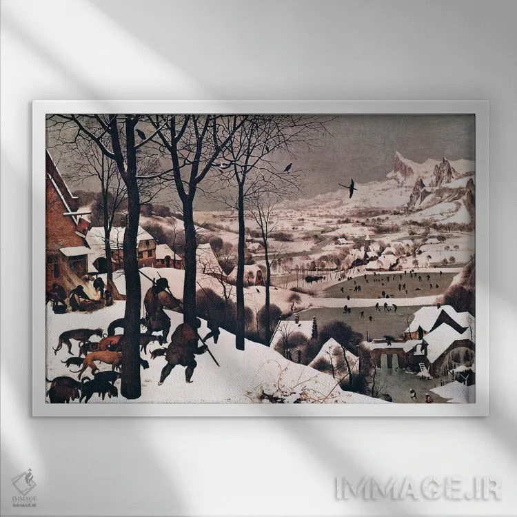 در این اثر، «شکارچیان در برف» اثرِ «پییتر بروگل پدر (نقاش هلندی)» به فضا، روایت ملایم و قابل لمس میدهد؛ برای فضاهایی با نور طبیعی پیشنهاد میشود. فضا را شلوغ نمیکند؛ فقط دقیقترش میکند.