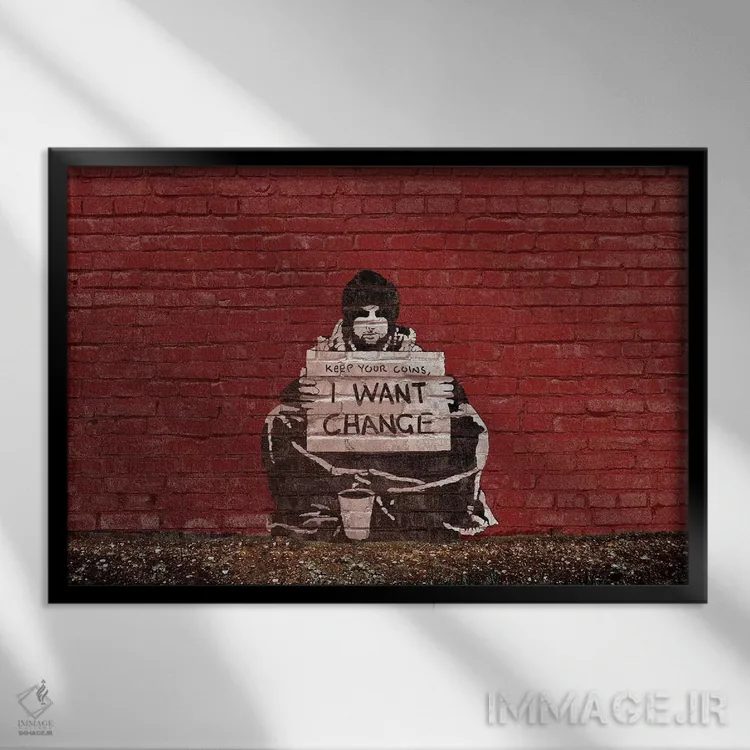 «سکههایت را نگه دار؛ من تغییر میخواهم (اثر Meek)» اثرِ «هنرمند ناشناس» میتواند گفتوگو و مکث ایجاد کند؛ برای اتاقهای رسمی پیشنهاد شود. برای دیوار گالری هم ترکیبپذیر است.