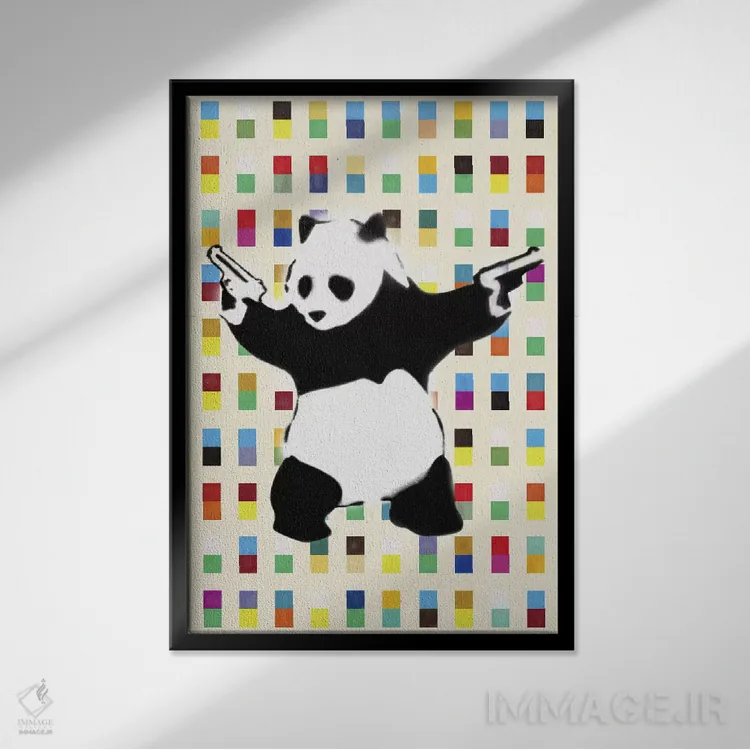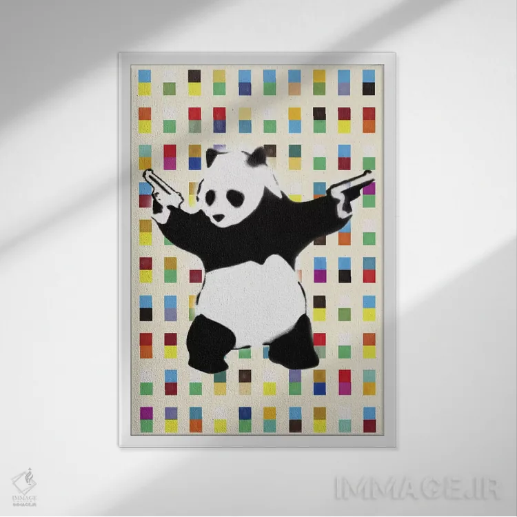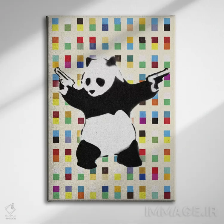 تابلو پاندای مسلح نقطه‌ای روشن اثر هنرمند ناشناس - نمای روبه‌رو روی دیوار