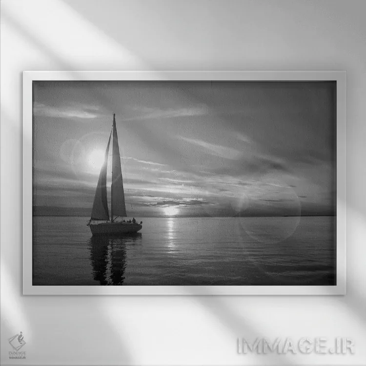 تابلو قایق بادبانی اثر هنرمند ناشناس - نمای قاب‌دار سفید