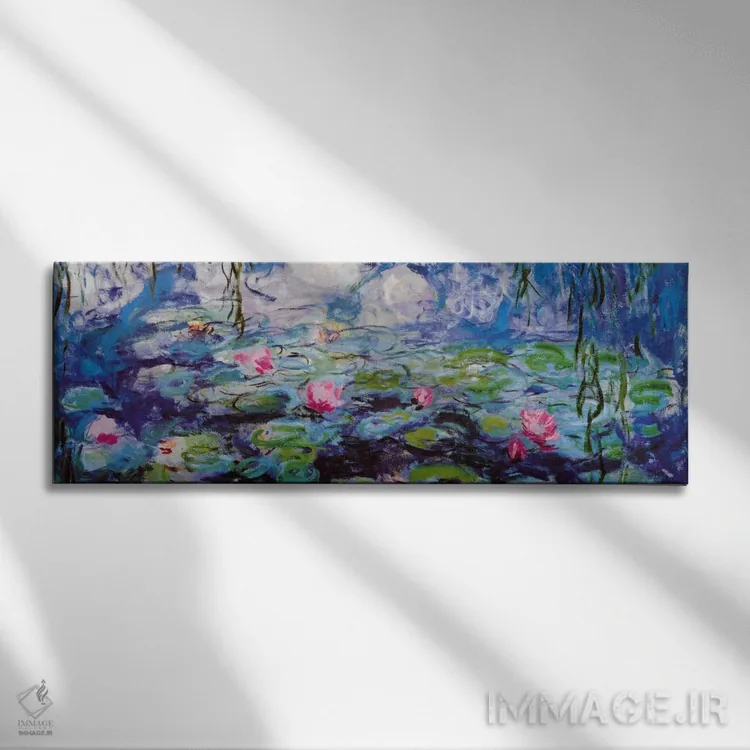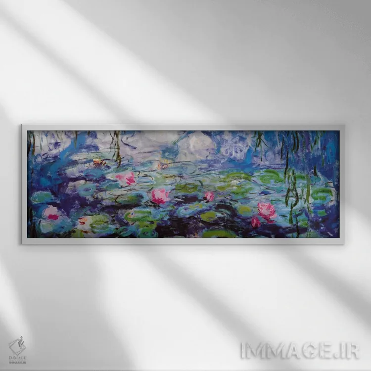 «نیلوفرهای آبی (پانوراما)» اثرِ «کلود مونه (نقاش معروف فرانسوی)» یک انتخاب کلاسیک و مرتب است؛ موضوعِ این اثر در آن برای دکورهای لوکس و چوبی عالی مینشیند.