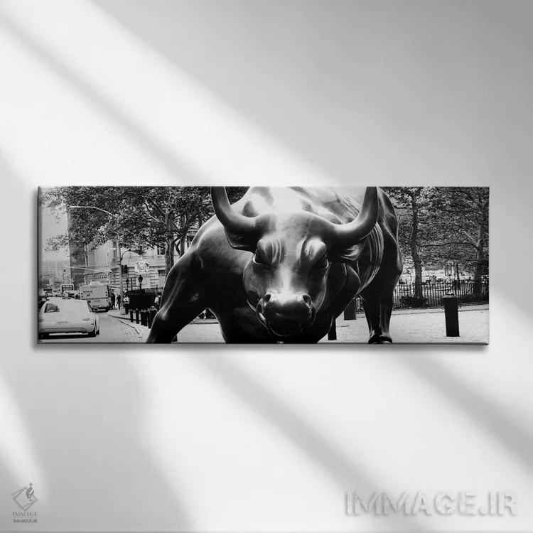 برای اتاقی که به یک عنصر دوستداشتنی نیاز دارد، «نمای نزدیک از گاو وال استریت» اثرِ «هنرمند ناشناس» مثل یک امضای بامزه اما متین عمل میکند؛ برای دکورهای مدرن و مینیمال انتخابی خوشسلیقه است. هم فضا را گرم میکند، هم شلوغش نمیکند.
