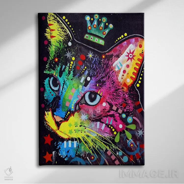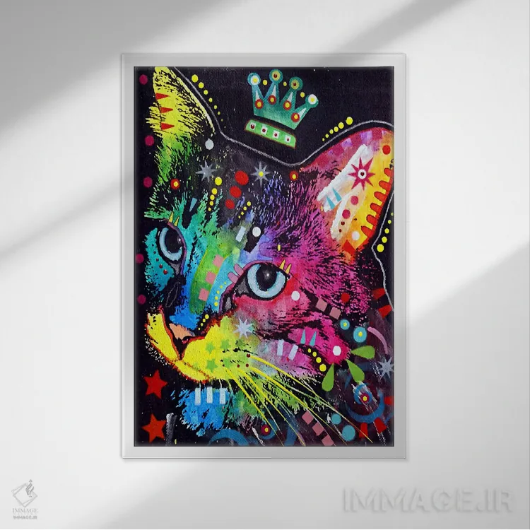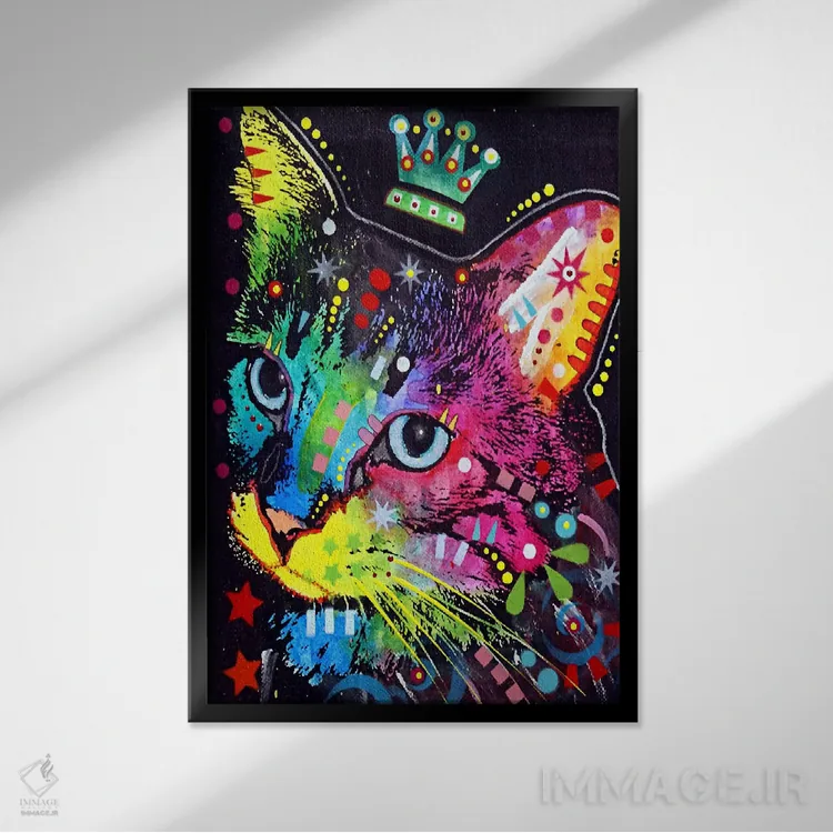 تابلو گربهٔ متفکر تاج‌دار اثر باور روسو - نمای روبه‌رو روی دیوار