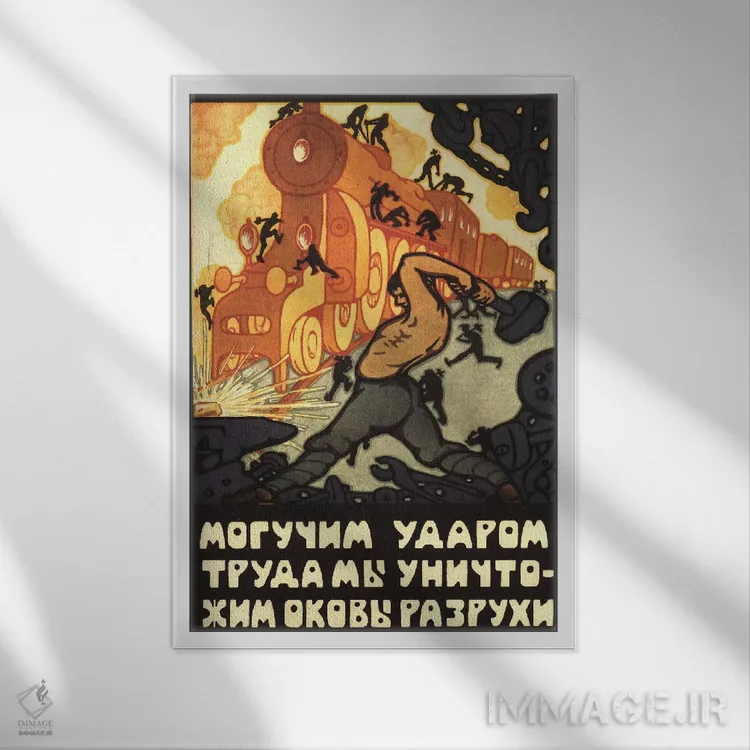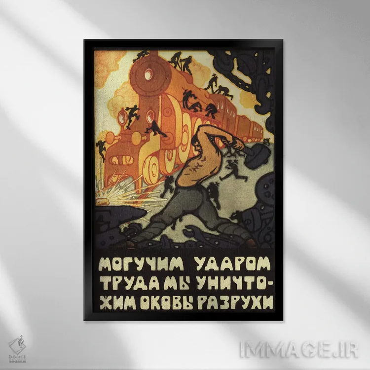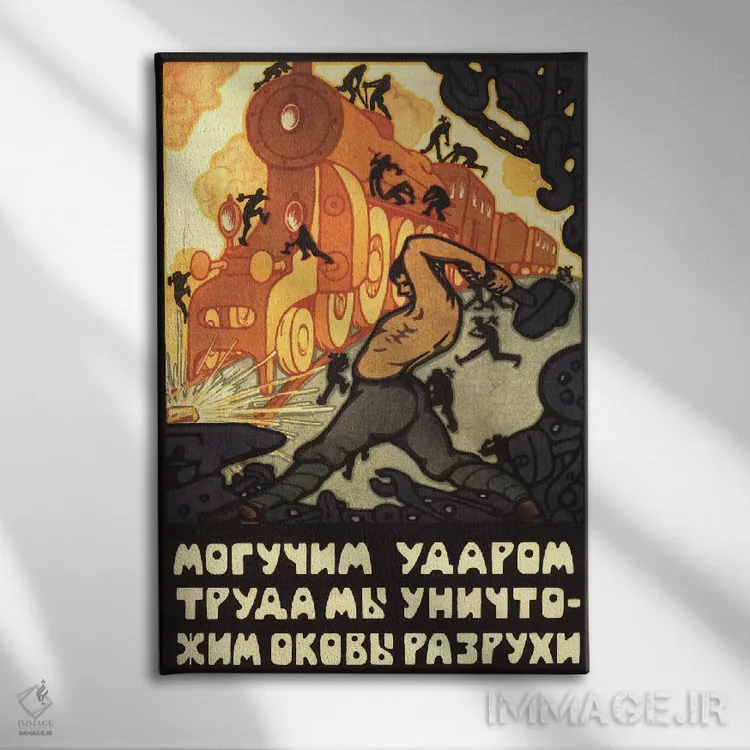 تابلو پوستر قدیمی کارگران لوکوموتیو بخار شوروی اثر هنرمند ناشناس - نمای پرسپکتیو محصول