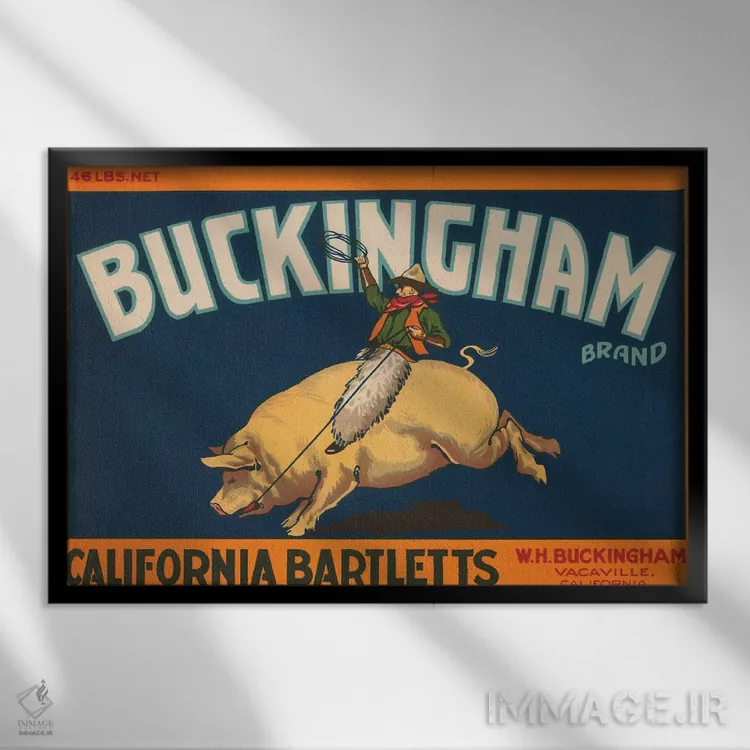 اگر میخواهید دیوار کمی سرزندگیِ محترمانه داشته باشد، «پوستر قدیمی برچسب بارتلت کالیفرنیا باکینگهام» اثرِ «هنرمند ناشناس» یک لبخند ریز به چیدمان میدهد، برای راهروها و ورودیهای گرم گزینهٔ مناسبیست. در کنار گیاهان و نور طبیعی، جذابتر هم میشود.