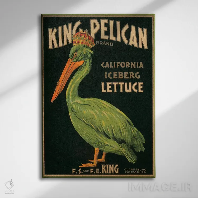 تابلو دکوراتیو پوستر قدیمی برچسب کاهوی کالیفرنیا برند شاه پلیکن
