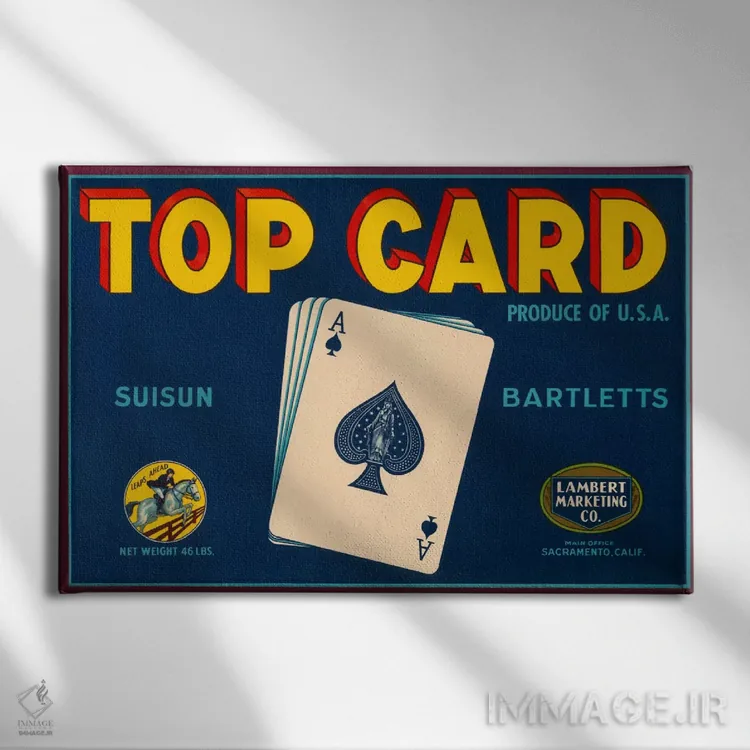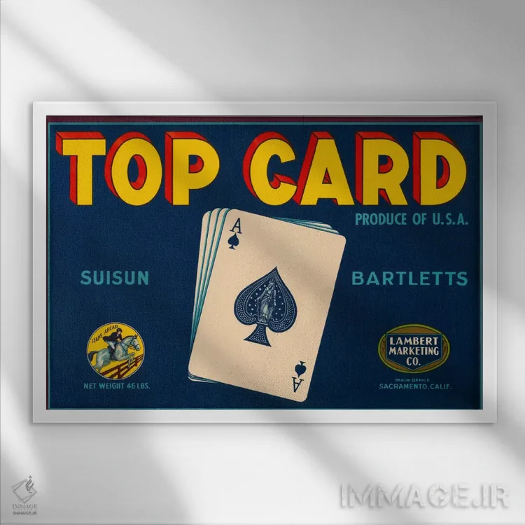 «پوستر قدیمی برچسب بارتلت سیوسون برند تاپ کارد» اثرِ «هنرمند ناشناس» کنار پوسترها و قابهای ساده، یک ترکیب دلنشین و متعادل میسازد.