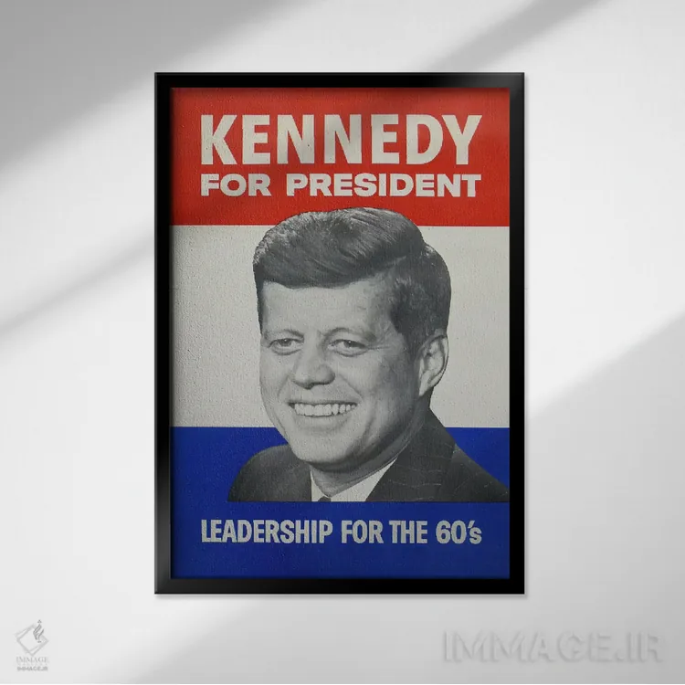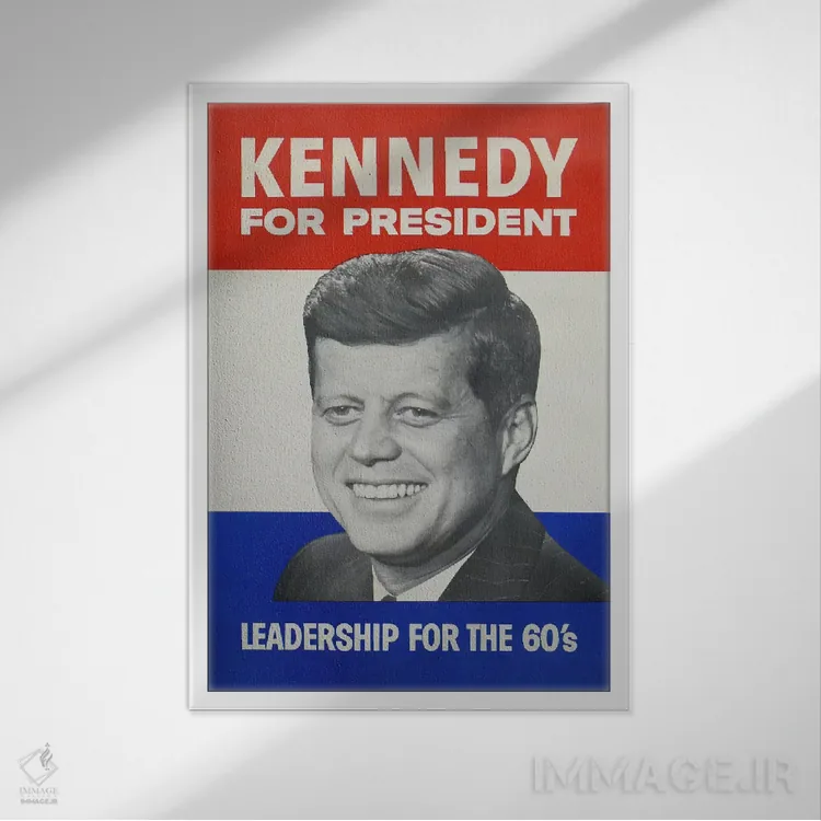 در «پوستر قدیمی کمپین کندی برای ریاست جمهوری» اثرِ «هنرمند ناشناس»، موضوعِ این اثر با زبانِ رترو روایت میشود؛ هم خاص است هم دکورپذیر.