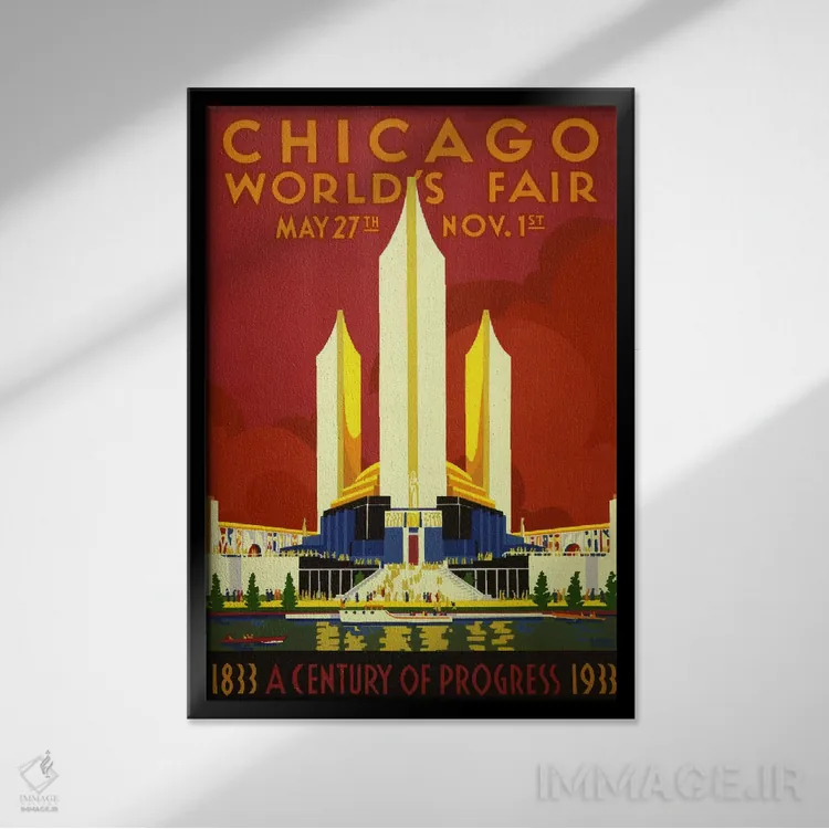 تابلو پوستر قدیمی نمایشگاه جهانی شیکاگو ۱۹۳۳ اثر هنرمند ناشناس