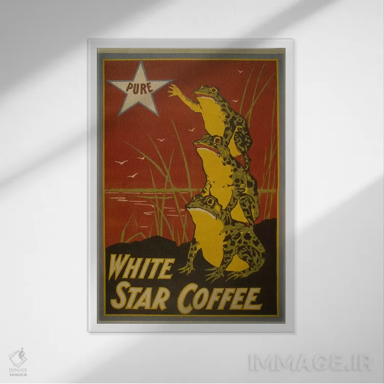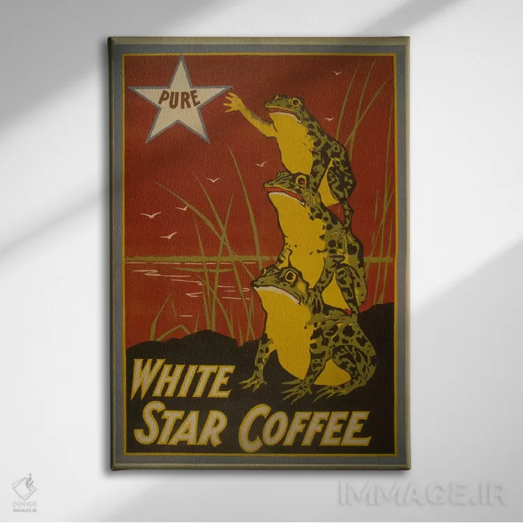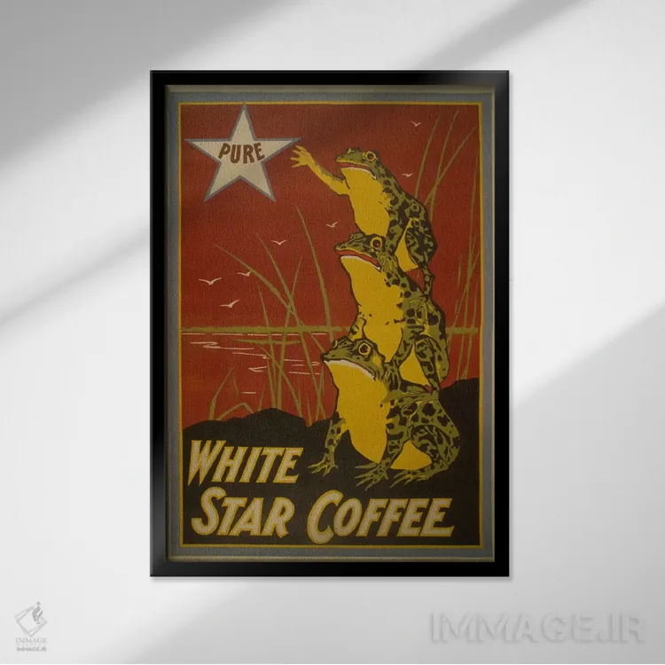اگر به آثار حیوانات علاقه دارید، «پوستر قدیمی برچسب قهوه وایت استار» اثرِ «هنرمند ناشناس» بافت و جزئیات را طوری نشان میدهد که نگاه میماند، برای خانههایی با چوب و پارچههای گرم گزینهٔ مناسبیست. حسش صمیمی است، اما کیفیتش جدی و خوشپرداخت.