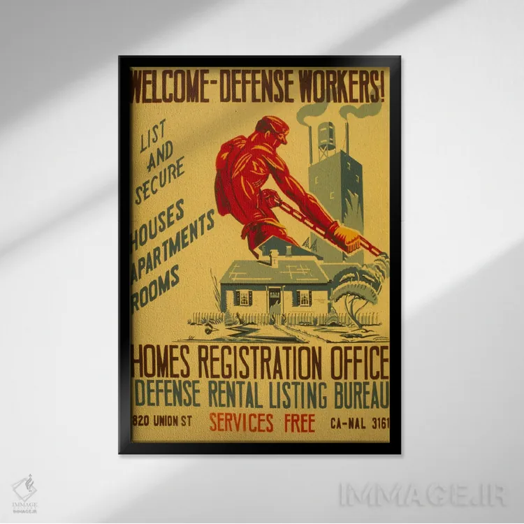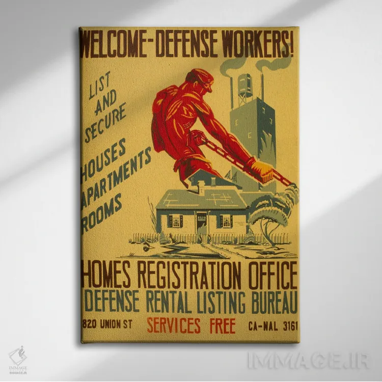 تابلو پوستر تبلیغاتی قدیمی خوشامد به کارکنان دفاعی اثر هنرمند ناشناس