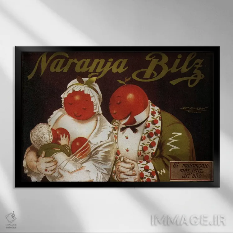 تابلو پوستر تبلیغاتی قدیمی نارنجا بیلز اثر هنرمند ناشناس - نمای قاب‌دار مشکی
